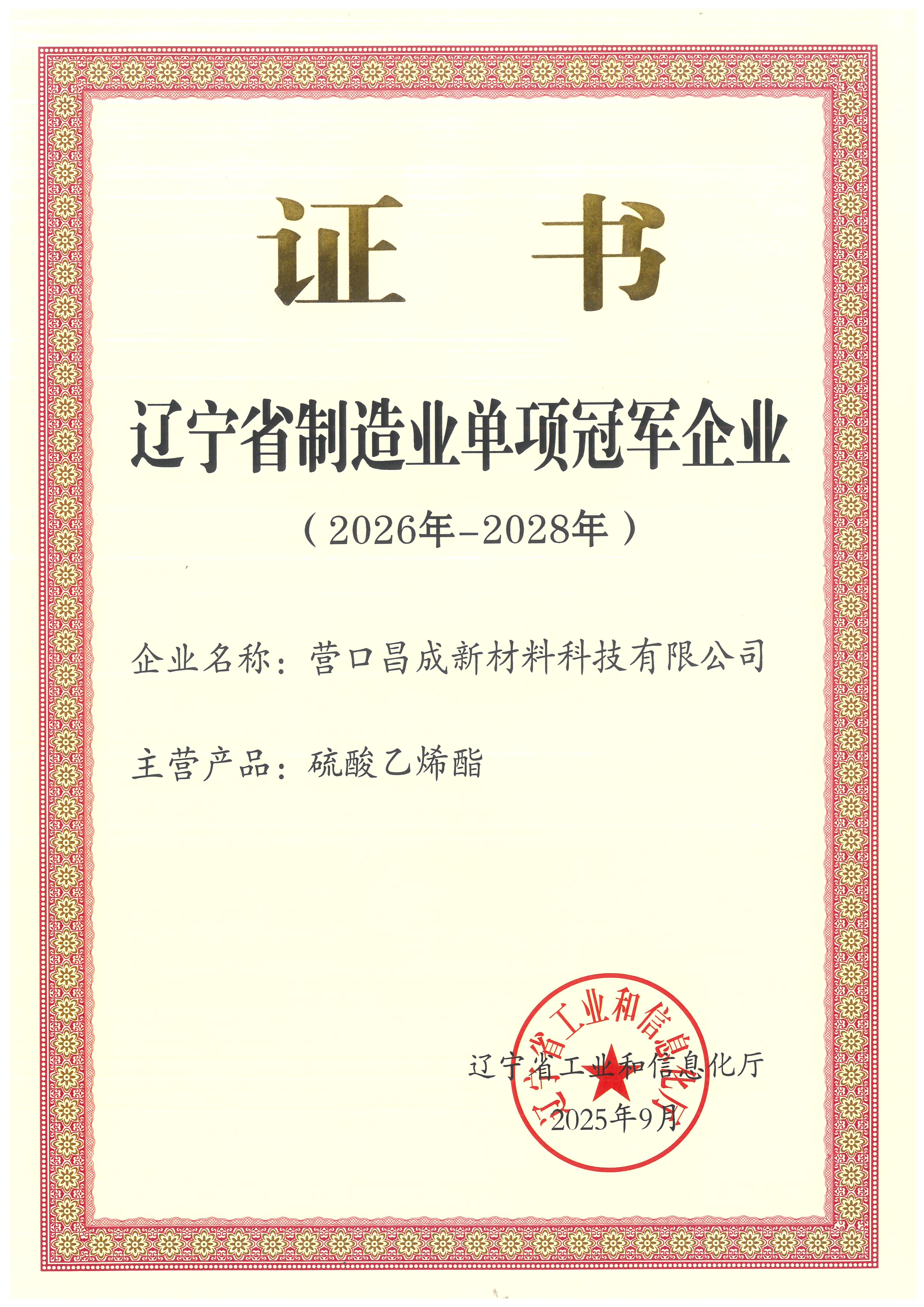 • 遼寧省制造業(yè)單項(xiàng)冠軍企業(yè)