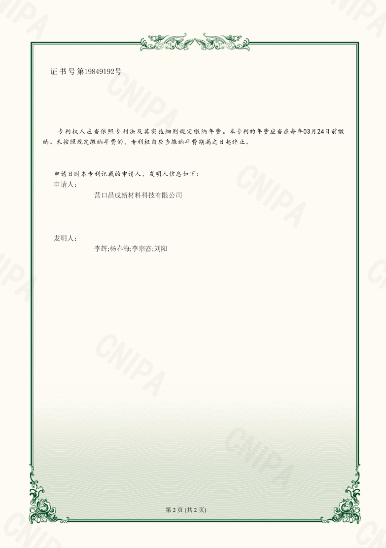 營(yíng)口昌成新材料科技有限公司 版權(quán)所有(C)2021?網(wǎng)絡(luò)支持?中國(guó)化工網(wǎng)?全球化工網(wǎng)?生意寶?網(wǎng)盛建站?著作權(quán)聲明  遼ICP備2021005949號(hào)